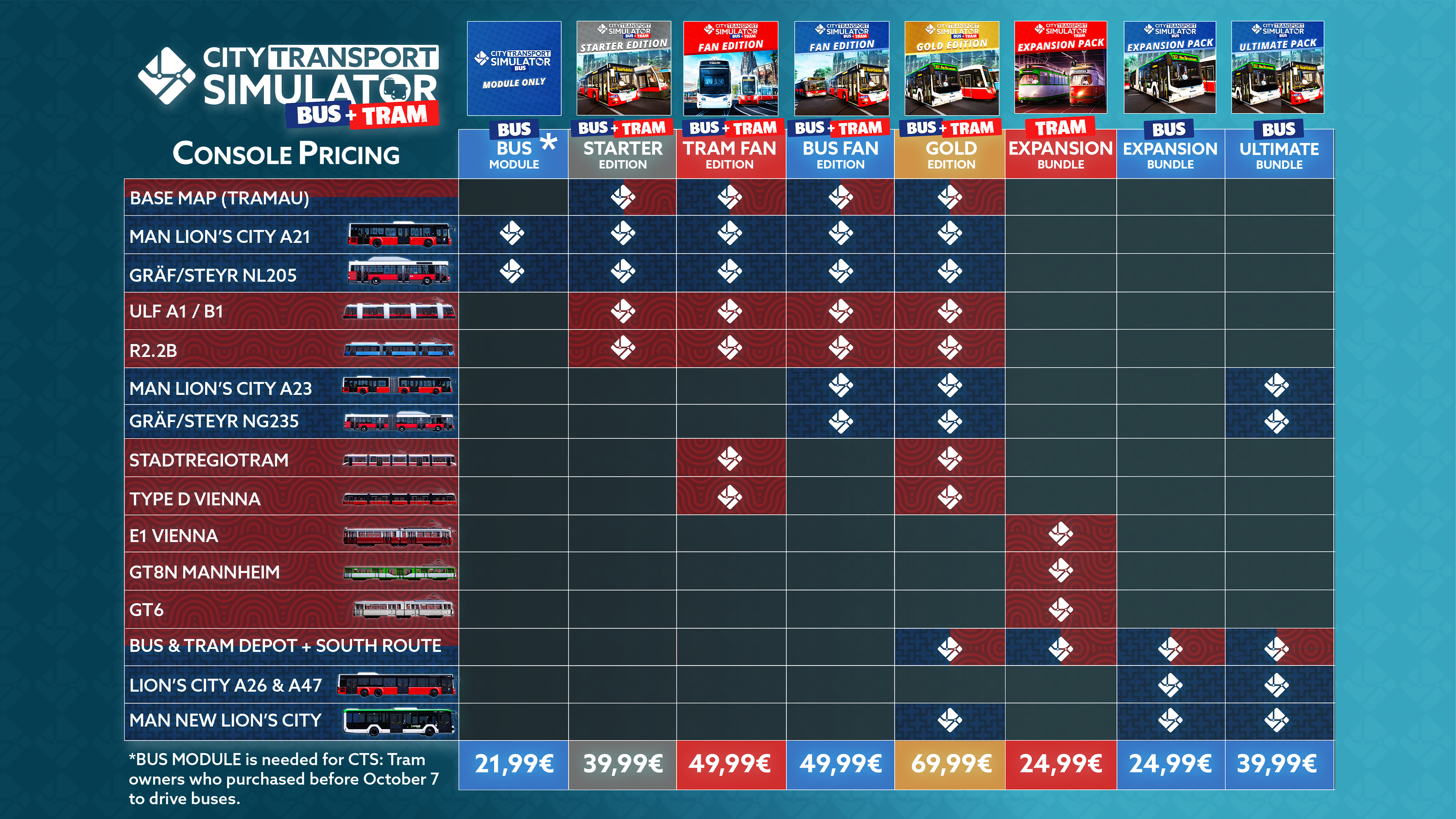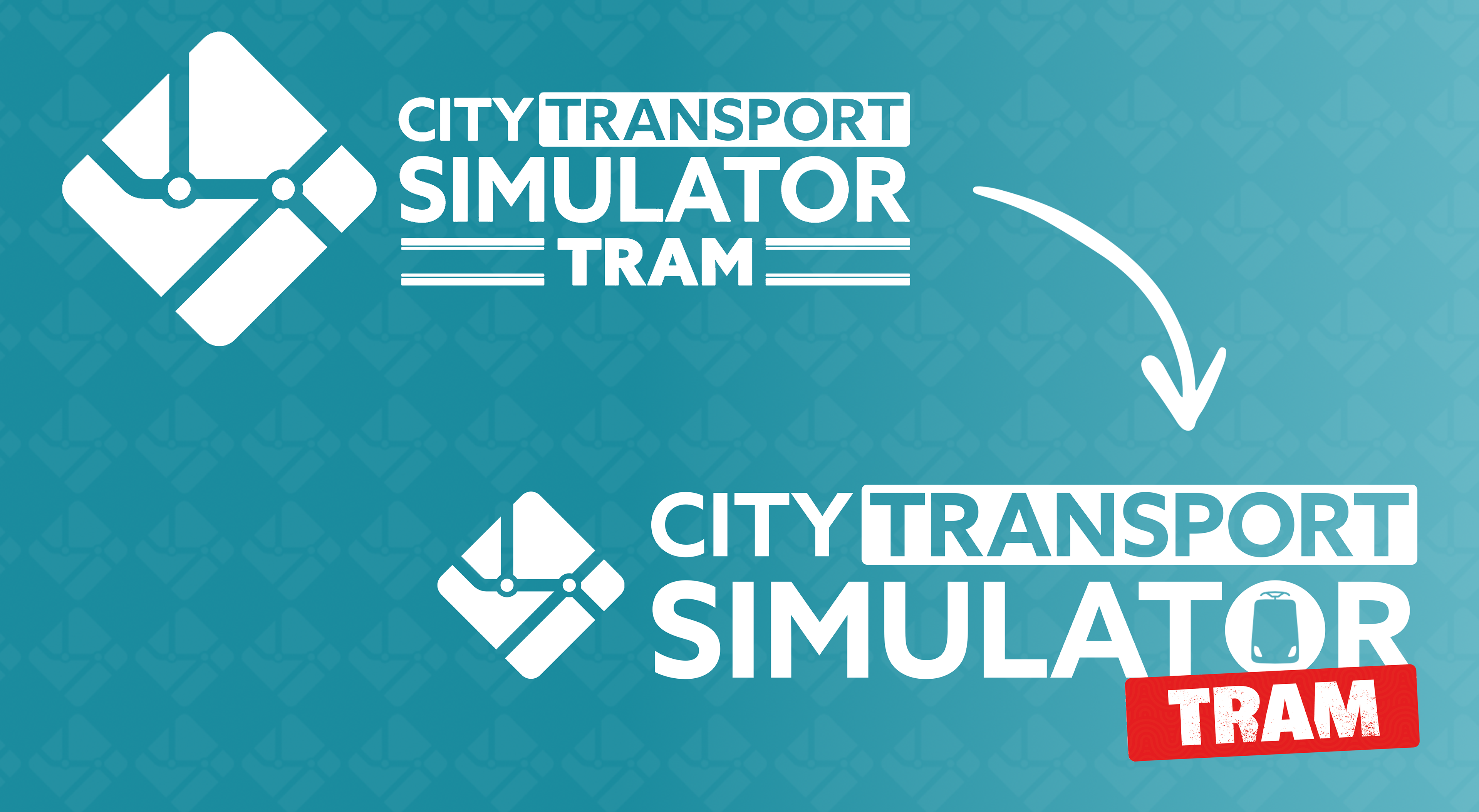 Für die Ankündigung von CTS: Tram wurde zunächst eine zusätzliche Zeile eingeführt, was das Logo jedoch visuell überladen hat. Als Lösung entstand ein stickerartiger Zusatz, der unten rechts platziert wurde. Dieser brachte nicht nur Klarheit, sondern auch Farbe ins Logo (Rot für Tram, später Blau für Bus).